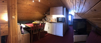 Ein Schlafraum mit zwei getrennten Betten, in diesem Bereich getrennt Dusche und WC. Der Wohnbereich mit Essecke ,Kleinküche incl. Spülmaschine und Balkon. Das Sofa kann hier als Doppelbett umgebaut werden. (ca. 32qm und Balkon) Ideal für 2 bis max. 4 Personen.