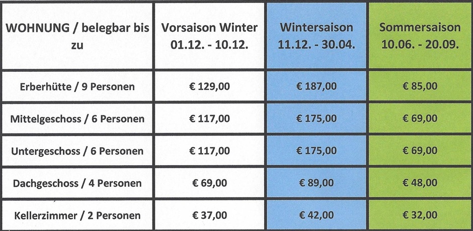 Mietbeginn im Winter ist Samstag ab 15:00 Uhr, Abreise ist Samstag bis 09:30Uhr